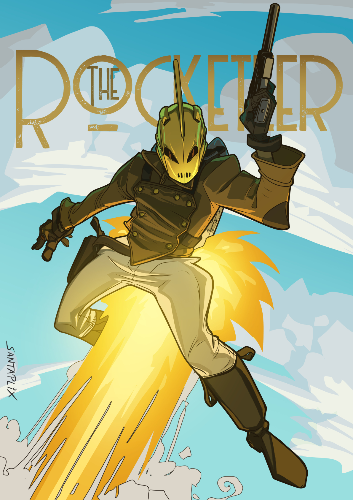 Rocketeer uno de mis personajes preferidos. Creado por Dave Stevens en 1982. Debutó en la historia secundaria de la serie Starslayer Pacific Comics. Cliff Secord, un piloto de acrobacias que descubre un misterioso propulsor que le permite volar. Sus aventuras tienen lugar en las ciudades de Nueva York y Los Ángeles en 1938, en un contexto de amenaza nazi, mafias, espionaje y glamour de Hollywood.