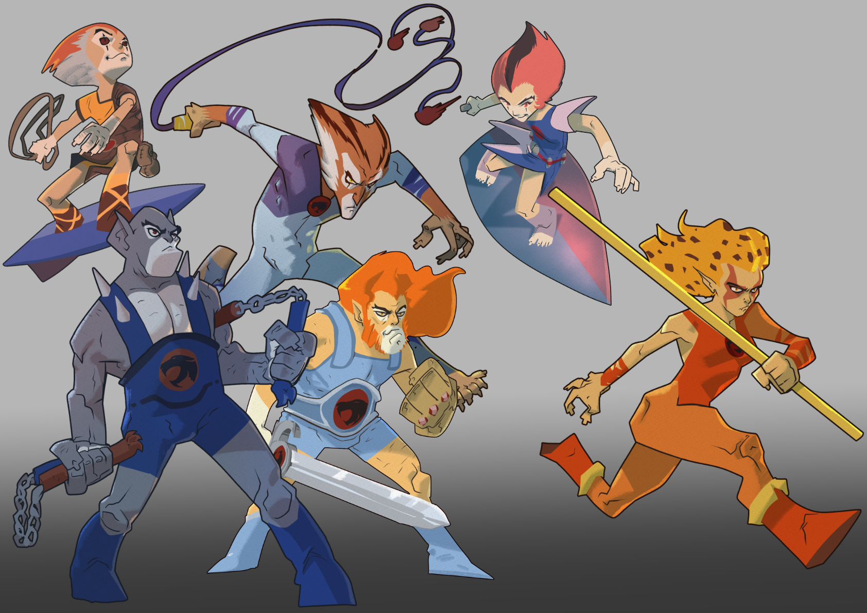 León-O, el joven líder, es el heredero del reino de Thundera y porta la poderosa Espada del Augurio, capaz de mostrar visiones y emitir el llamado «Ojo de Thundera». Su valentía y sentido de la justicia lo convierten en el corazón del equipo.